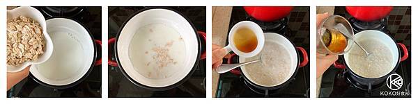 ➔用小火加熱牛奶,等到冒小泡泡時(不要大滾)倒入燕麥片。
